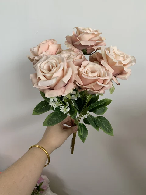 Hot Sale 15 Heads Artificial Silk Rose Bouquet Flowers for Wedding Bouquet Bridal